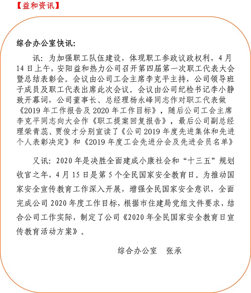 安陽(yáng)益和熱力公司召開第四屆第一次職工代表大會(huì)暨2019年度總結(jié)表彰大會(huì)